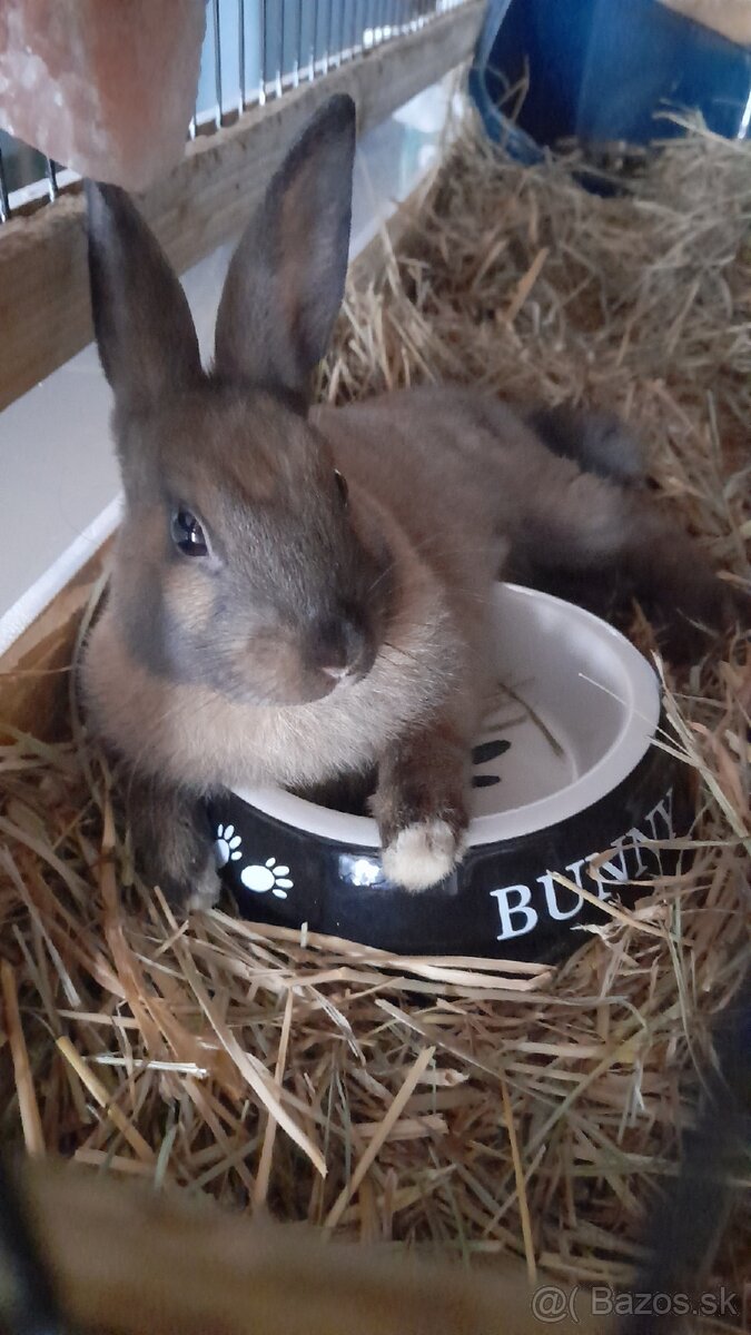 4 mesačný zajac s klietkou. Zajac kúpenỳ v Superzoo 35 eur a poschodová, drevená klietka 250 eur.