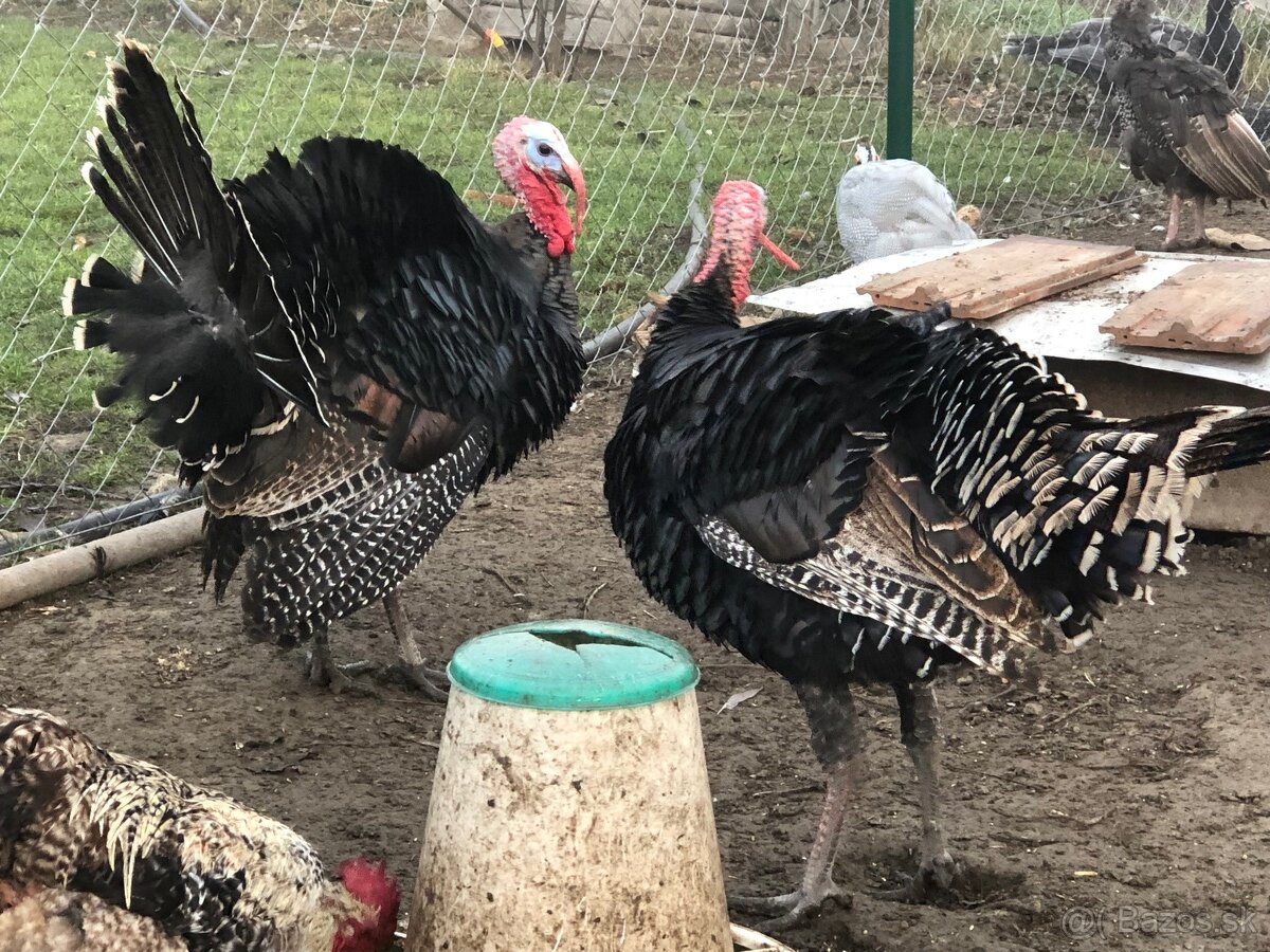 predám moriaky bronzové, 3 kusy, narodení sú na jar pod morkou, veľkí, krásni, vhodní do chovu, kŕmení pšenicou a kukuricou, celý deň sa pasú na tráve. Predám aj jednu mladú morku, tiež narodenú tento rok na jar.