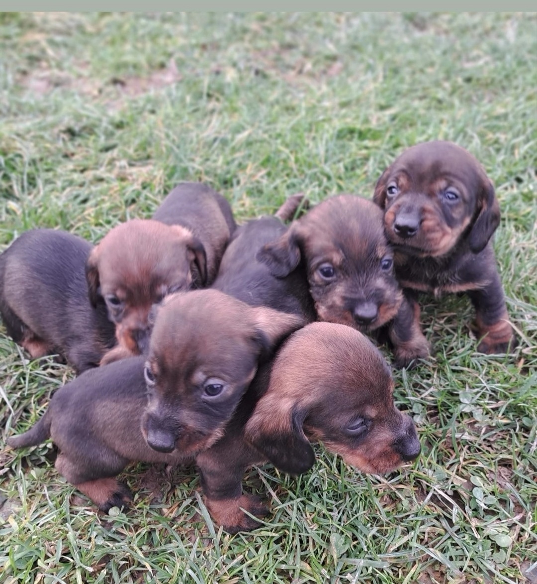 jazvečik hrubosrstý - [29.11. 2025]Perdám 8 týždňové fenky jazvčika hrubosrtého, bez papierov. Otec a matka sú veľmi užitočné v lese. Šteniatka sú očkované, odčervené, čipované a majú už aj higienické návyky.