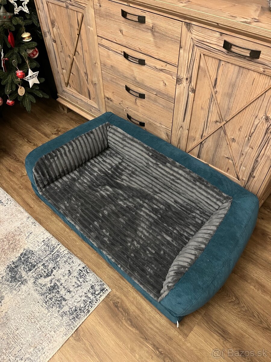 Predá úplne nový pelech pre psa, rozmery 110x65cm, veľmi kvalitný, mäkkučký materiál s ortopedickým matracom. Farba kombinácia sivý plyš a menčester safira. Pelech je celý rozopínateľný a je možné ho prať v práčke.