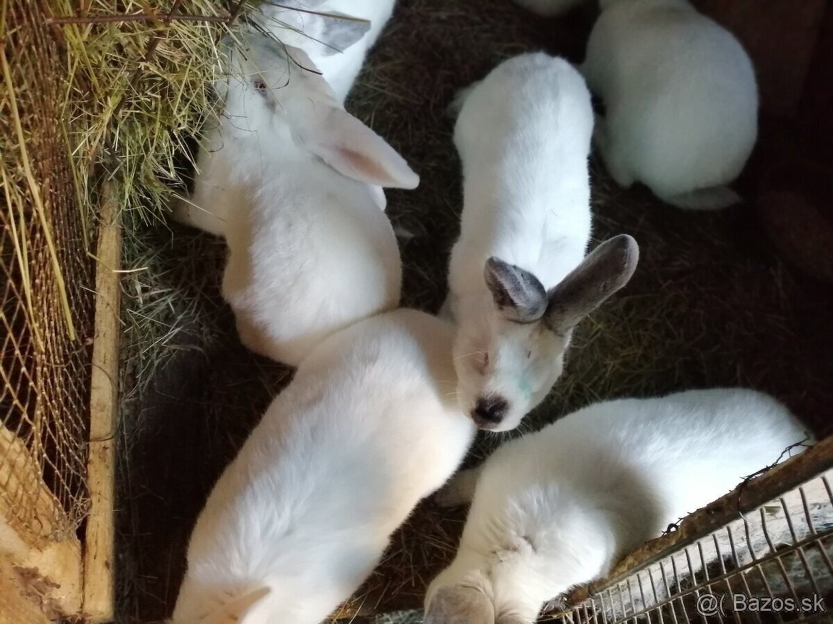 samce 19€/samice 20€, už oddelené podľa pohlavia. Rodičia: kalifornský a novozélandský biely-vyznačujúce sa dobrým osvalením, rastom, a odchovom mláďat, v jednom vrhu cca 7-9ks ktoré aj vedia odchovať. (V ponuke aj 2 tohtoročné capy do chovu