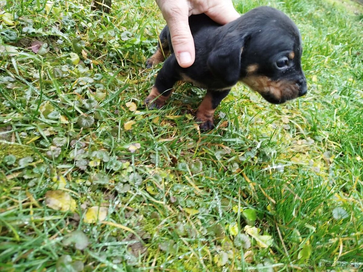 Ponúkame na predaj šteniatka jazvečíka krátkosrstného. 1 čierna fenka, 2 hnedé psíky.