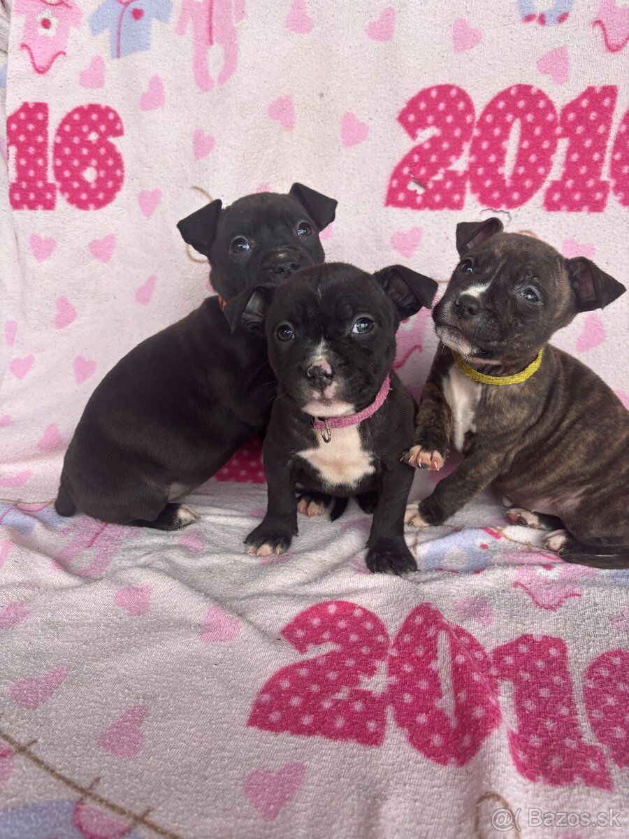 Predám posledné 4 šteniatka amerického staforda posledný 1 psík a 3 fenky sú odčervené a očkované papáju samé po dohode vieme priviesť matka je žihana tu je možné vidieť a otec je modrý sú na posledných fotkách v prípade záujmu prosím len písať nie volať SMS, whatsapp alebo email ďakujem