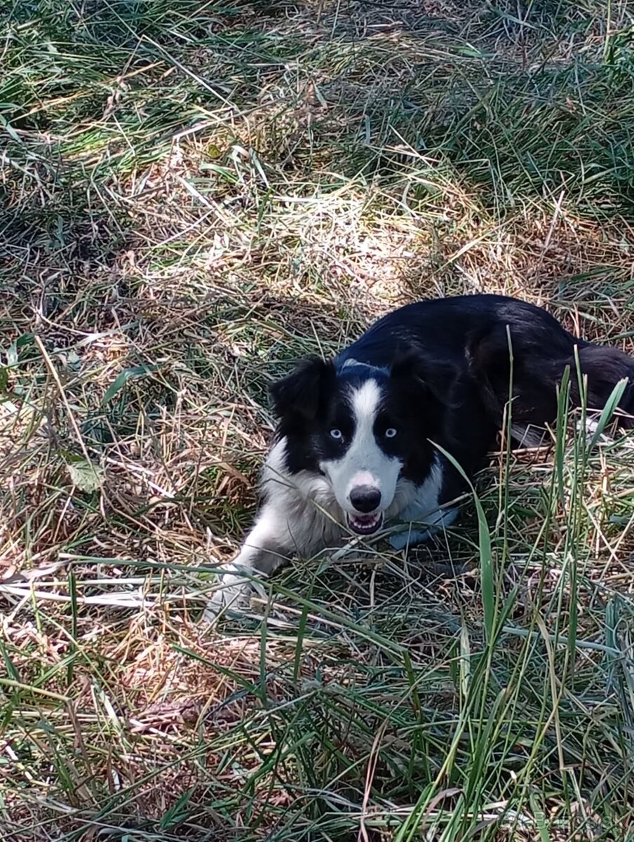 Predám 9 mesačnú border koliu čierno biela modré oči má cena 250.