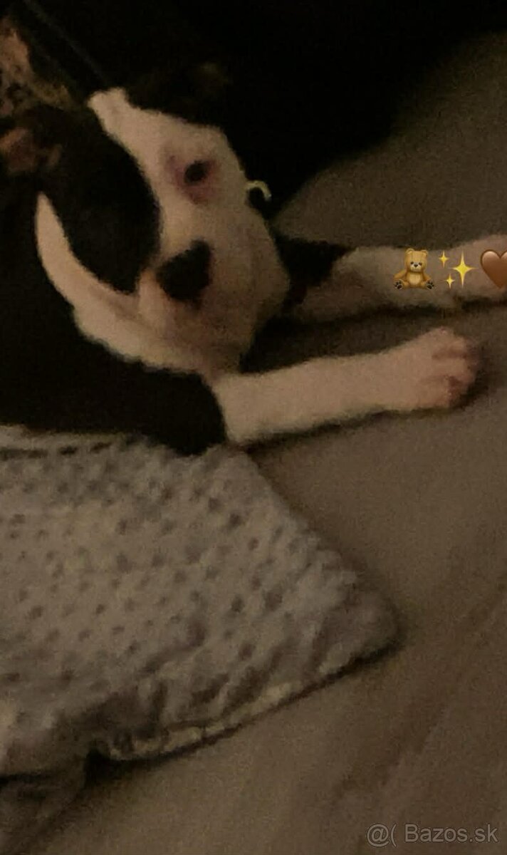 Predám 4 mesačne stena Američan Bull XL fenu dám len do dobrých rúk neznesie sa s našou staršou dámou už jej stihla prekusnut pri oku cena 400 eur dementi a mnoziari nevolajte a i zjednavaci