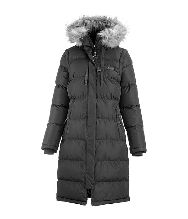 Potešte seba alebo niekoho blízkeho :) s visackou, iba oblečený na foto.ponúkam čierny jazdecký kabát s odnímateľnými rukávmi, umelá ko.zusina na kapucni sa dá dať dole. Kabát je nastaviteľný v páse, má obojsmerný zips, vrecká, vzadu sa rozopina.Veľkosť L..osobný odber vo Vranove alebo možnosť zaslania kamkoľvek, aj do Čiech cez packetu. 100€
