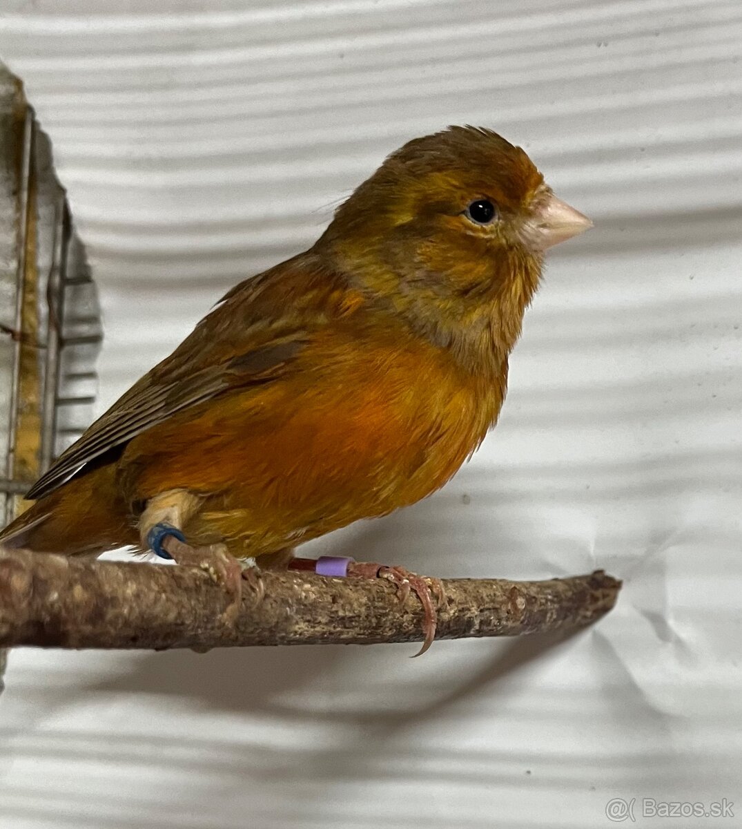 Kanarik - [18.12. 2025]Predám samca alebo vymením za samicu kanárika červená mozaika pôvod Taliansko Modena 2025 .