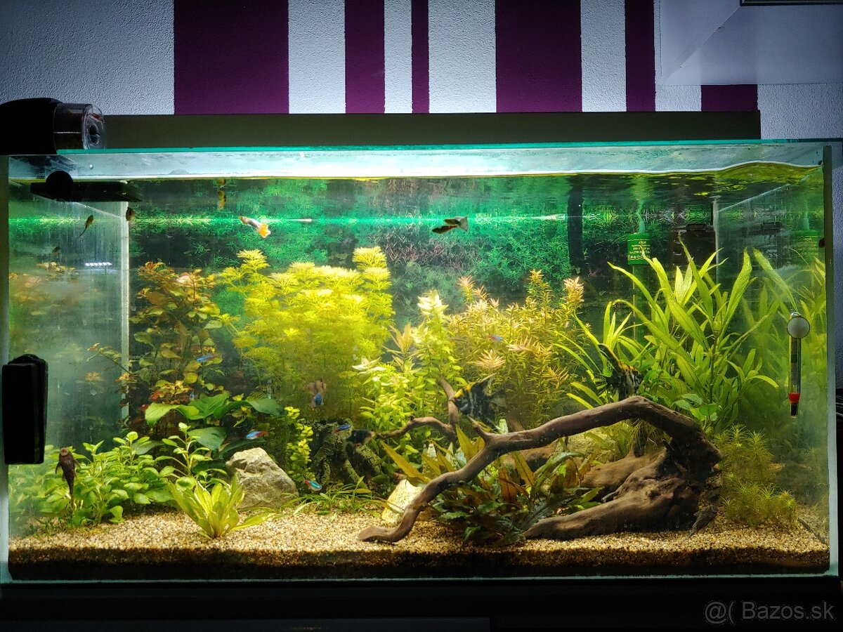 Predávam ho VYPUSTENÉ bez rýb, rastlín a dekorácií, to už je všetko preč. Iba akvárium s krycími sklami a pozadím, filtre a svetlo.