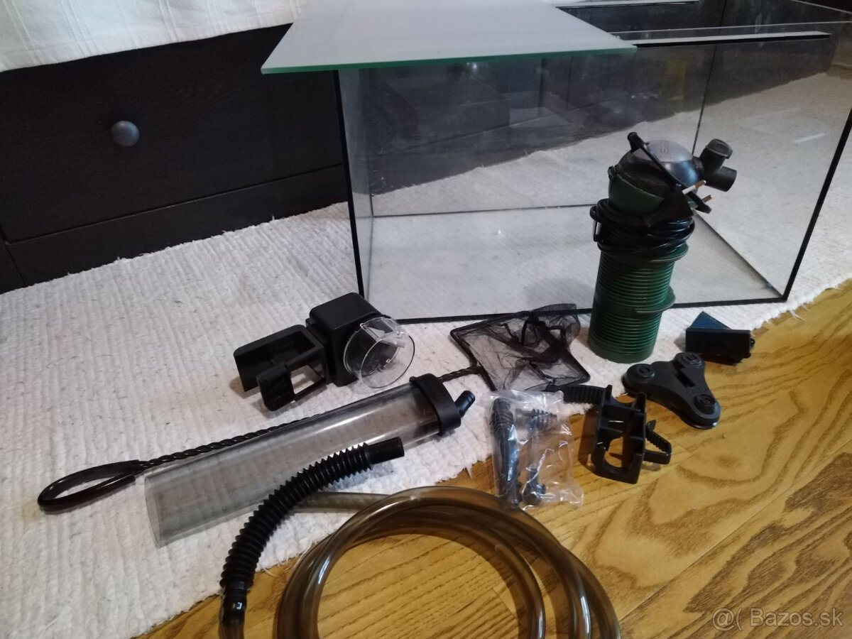 K akváriu sú aj dekorácie, ohrievač a veci potrebné na údržbu akvária. Filter NIE JE súčasťou