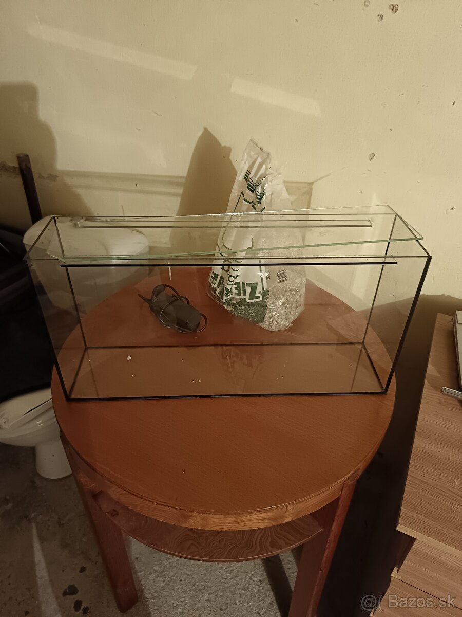 Predám akvárium 60x15x30 plus krycie sklo, kamienky a filter.