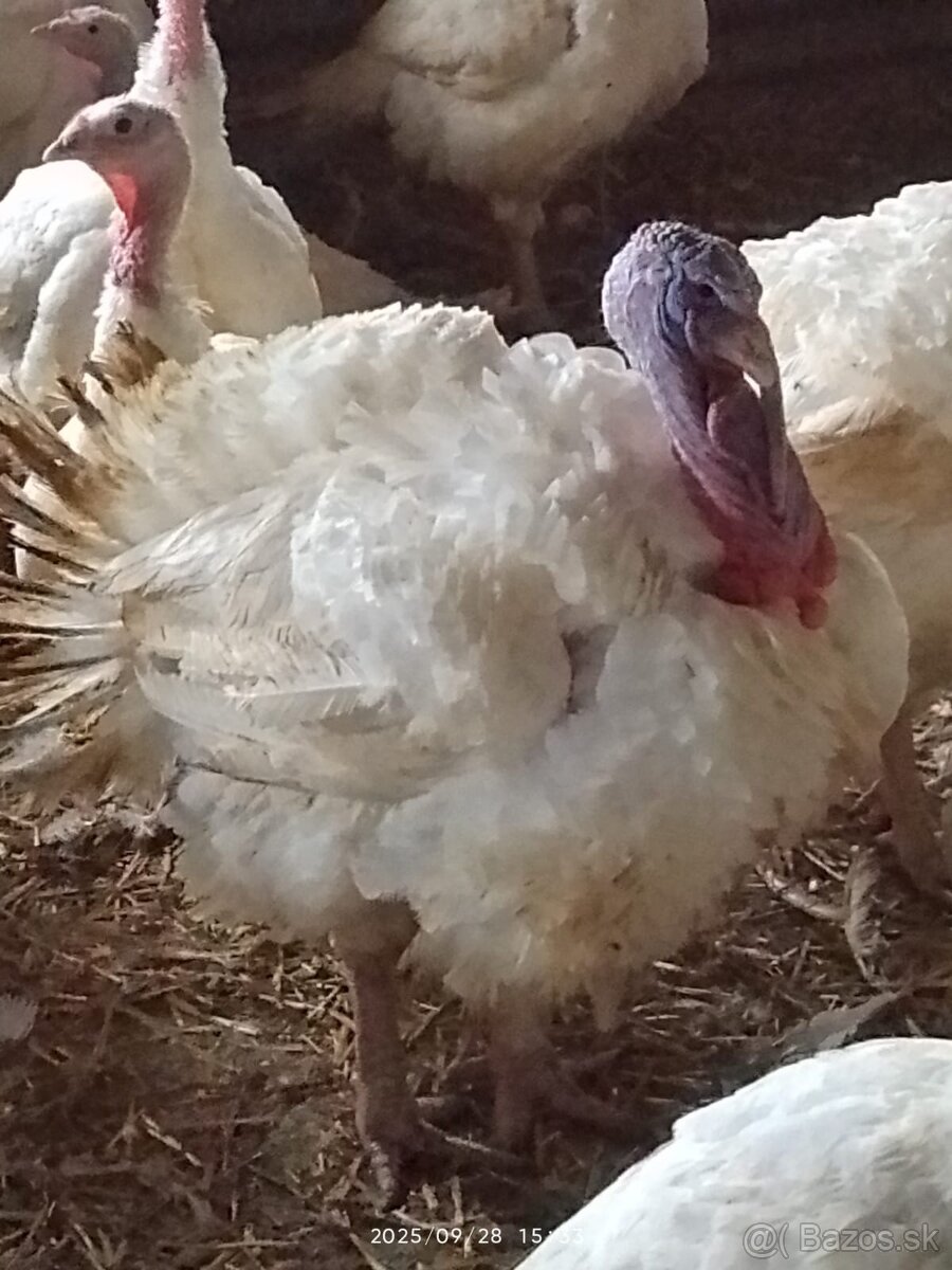 Predám jatočné morky vo váhe 10-12kg, cena za kg živej hmotnosti 4,50€. Po dohode možno očistiť, cena za kg 6€.