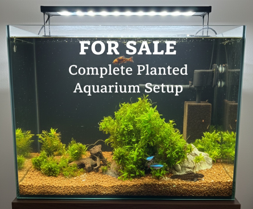 🌿Ponúkam na predaj 240-litrové akvárium s bohatou vegetáciou a kompletným vybavením.