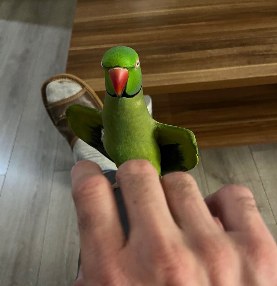 Ponúkam do dobrých rúk nášho Alexandra. Je voľne žijúci v našom dome. Je zvyknutý na deti psa mačku. Papa z ruky a rozpráva. Je veľmi inteligentný a patrí medzi najučenlivejších zo všetkých druhov papagájov, pritom je kľudný, nehlučný a spoločenský. Ručne (teda umelo človekom) odchovaný je prirodzene krotký a je veľmi dobrým spoločníkom človeka. Na chov je pritom nenáročný a zvládne ho aj úplný začiatočník. Je to najvhodnejší papagáj do bytu. V byte ho môžete chovať samého, alebo v páre. V našej rodine ho mame od mláďatká už 11 rokov. Len vážny a seriózny zaujem. 0907268570.