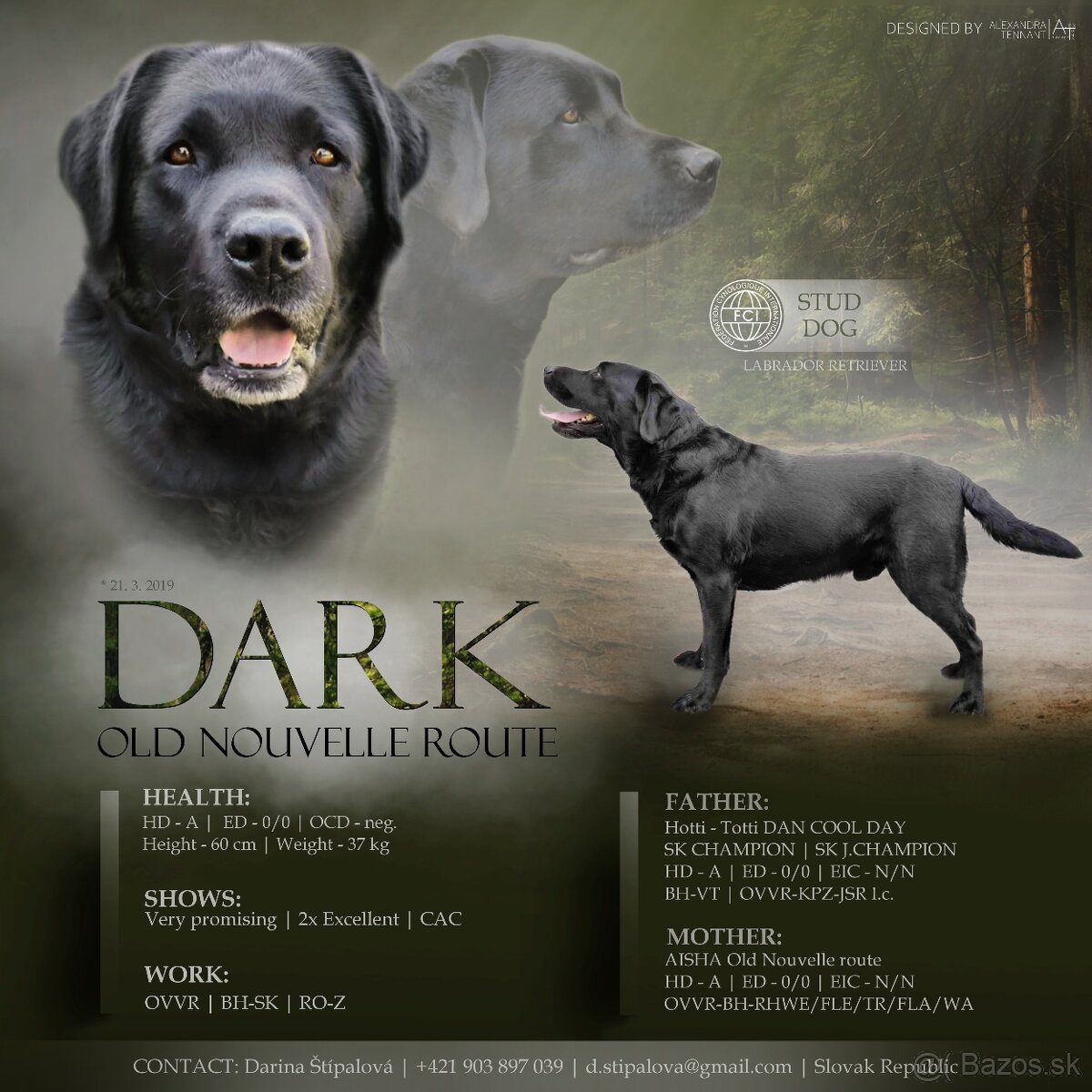 Dark je krásny predstaviteľ plemena Labrador Retriever – milý a vždy dobre naladený spoločník. Jeho priateľská povaha, výborný exteriér a skvelý vzťah k ľuďom z neho robia ideálneho partnera pre fenky s preukazom pôvodu.