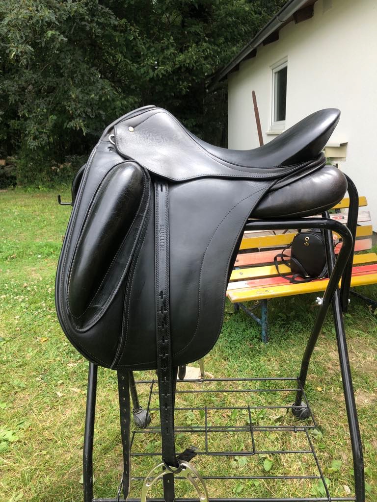 Posuniem ďalej drezúrne sedlo svetovej značky Schleese, model ERI. Dĺžka posedlia 17,5, komora originál 3 ale rozšírená sedlarom na 5. ( dá sa za studena upraviť priamo pri koni). Široký chrbtovy kanál. Je na bezkohutikate, široké, guľaté kone. Kolenné opierky sa dajú upraviť podľa nohy jazdca. Viac info mailom, po telefóne, osobne.