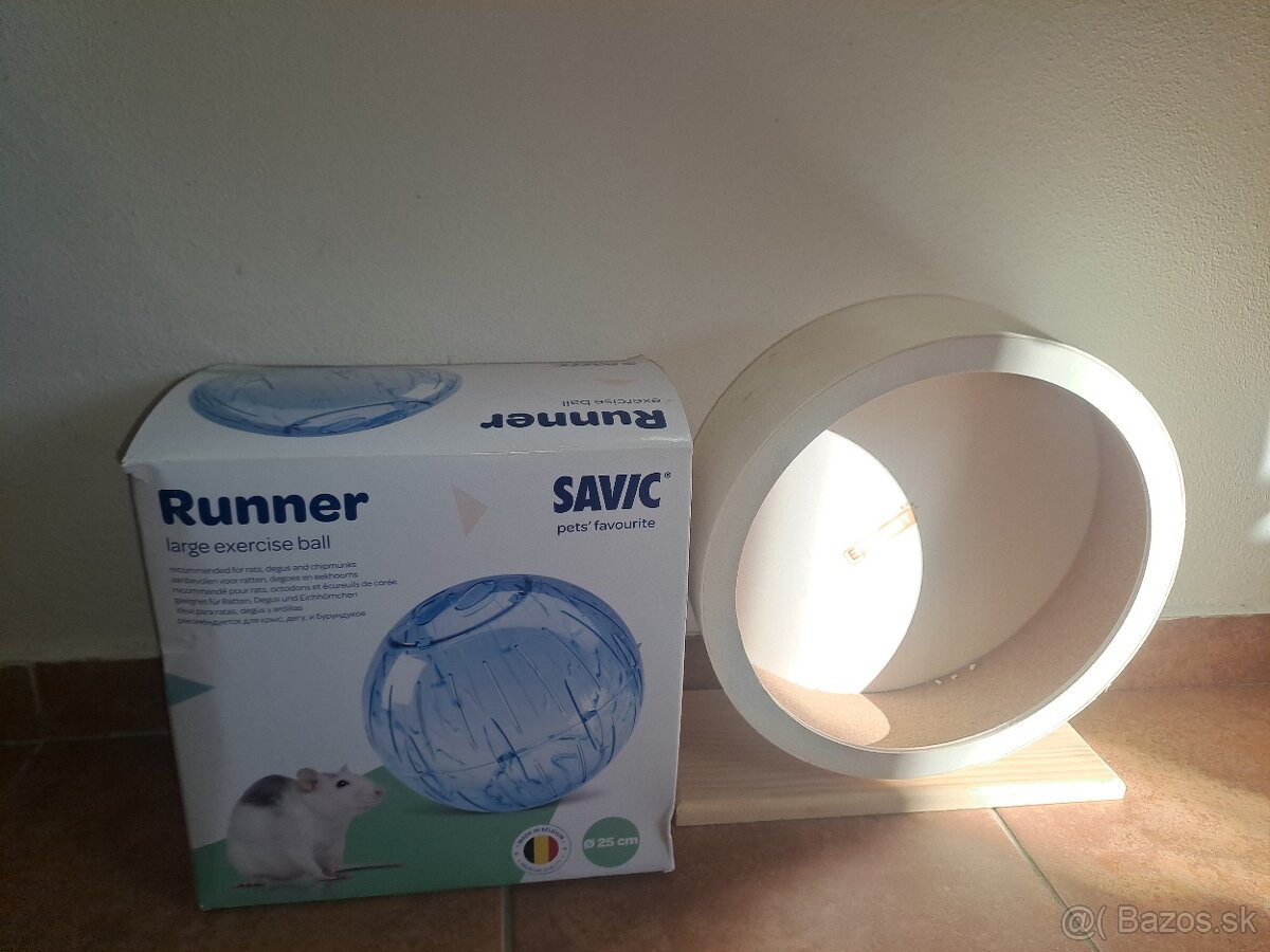 Predám nepoužité (s visačkou), kvalitné veľké drevené koliesko pre hlodavce + bežeckú guľu SAVIC Runner (25 cm).