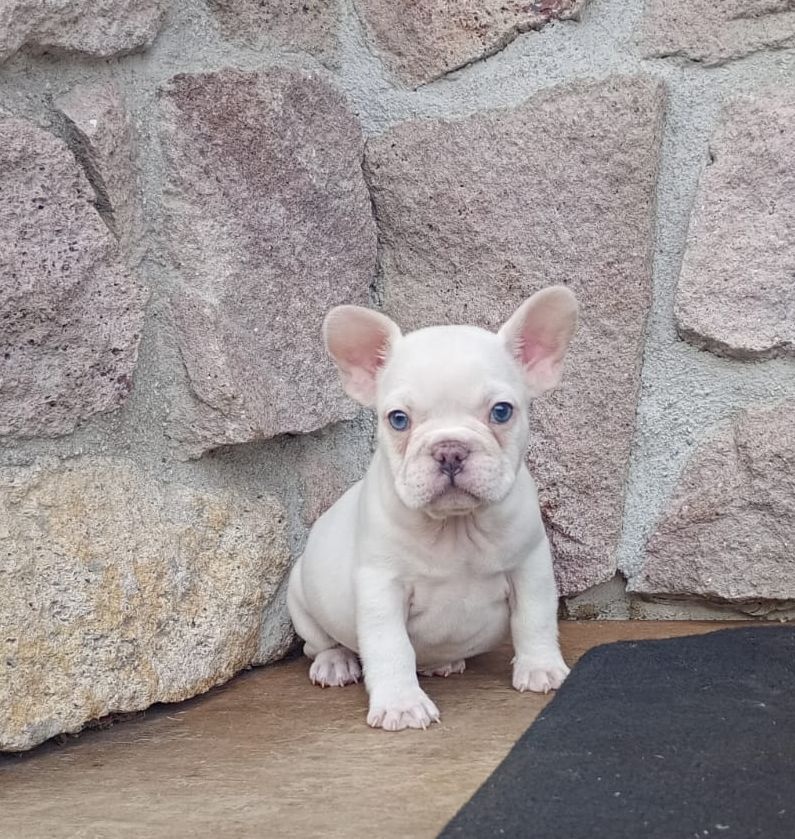 Ponúkam na predaj posledného psíka z vrhu, je krémový s modrými očami.