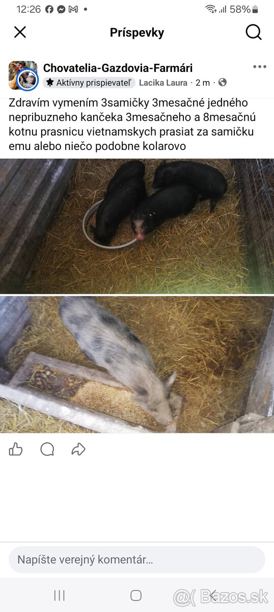 Vymením za emu samicu alebo predám 3samičky 1kanca nepribuzneho a jednu 8mesačnu prasnicu ktorá onedlho bude rodit