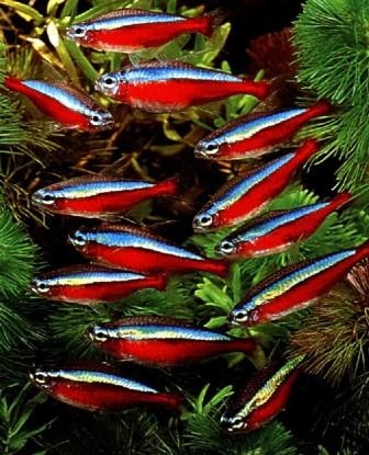 Neonka červená a jiné druhy ryb