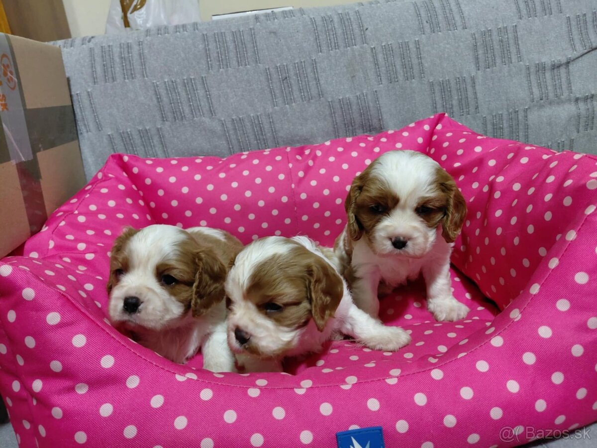 Ponúkam na predaj šteniatka blenheim kavaliera,jednu sučku ( na fotke v strede) a dvoch psov. Možný odber o dva týždne.