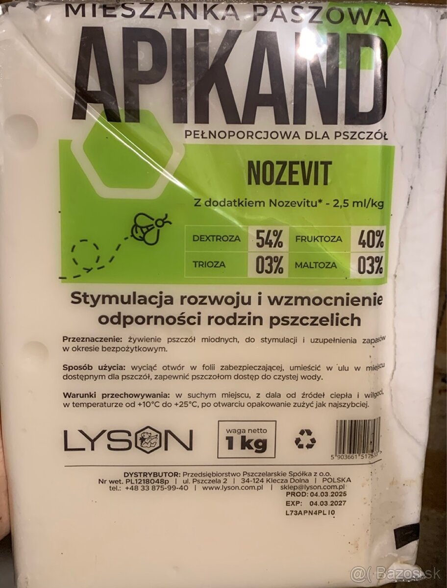 Predám plnoporčné krmivo pre včely Apikand s Nozevitom od značky LYSON.
