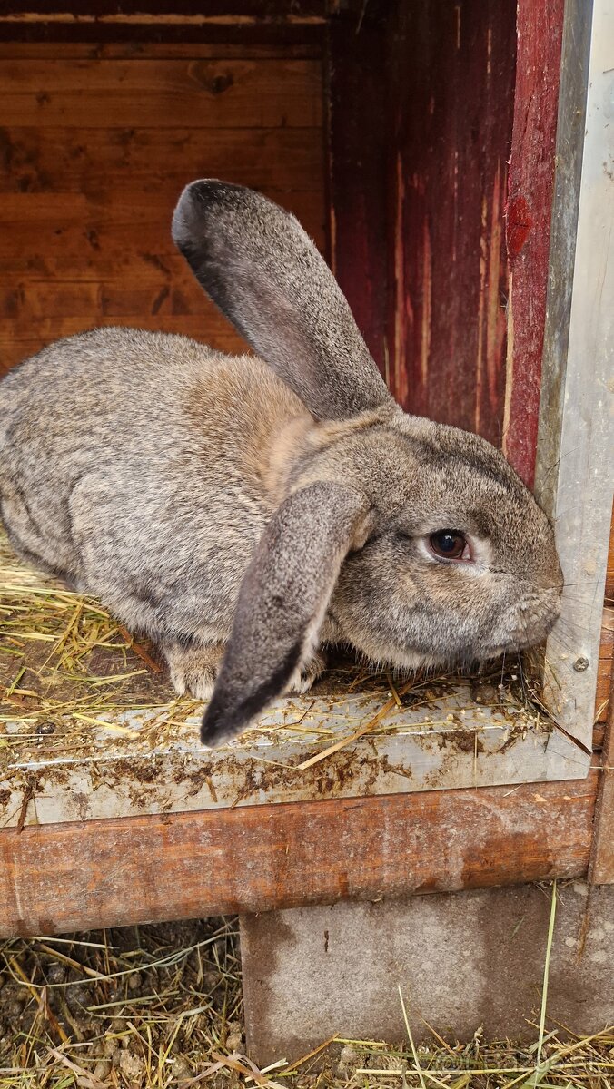 Predám mladého samca do chovu. Kríženec francuzskeho barana a velkej svetlej striebornej. Okres Martin.