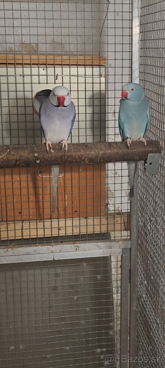 Alex velky nepalsky - [24.1. 2026]Predám chovnu páru Alexander Veľký kr17 kt16 kvôli uvoľneniu voliery pre iní druh vtáctva samica začína chodiť do búdky možnosť predaj aj mladého samca