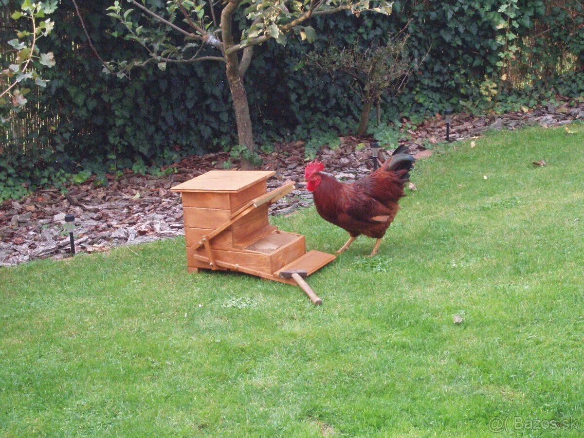 Ponúkam na predaj automatické nášlapné krmítko. Na vrchnej časti zásobníka je kryt kde sa dopĺňa krmivo. Výhodou tohto krmitka je že zabraňuje znehodnocovaniu krmiva hlodavcami (potkany, myši) a nekŕmia sa vám na krmive vtáci (vrabci). Pri prvom použití treba nášlapný mechanizmu nechať pootvorený, aby sa sliepky naučili s krmitka žrať. Stačí na nášlapku položiť záťaž, aby bola pootvorená. Po troch dňoch môžete krmitko zatvoriť a sliepky si krmivo nájdu samé. Rozmer krmitka šírka 35cm. hĺbka 45cm.bez nášlapky, výška 40cm.Do krmitka sa zmestí cca 15kg.krmiva.Možnosť poslať kurierom po celej SR.