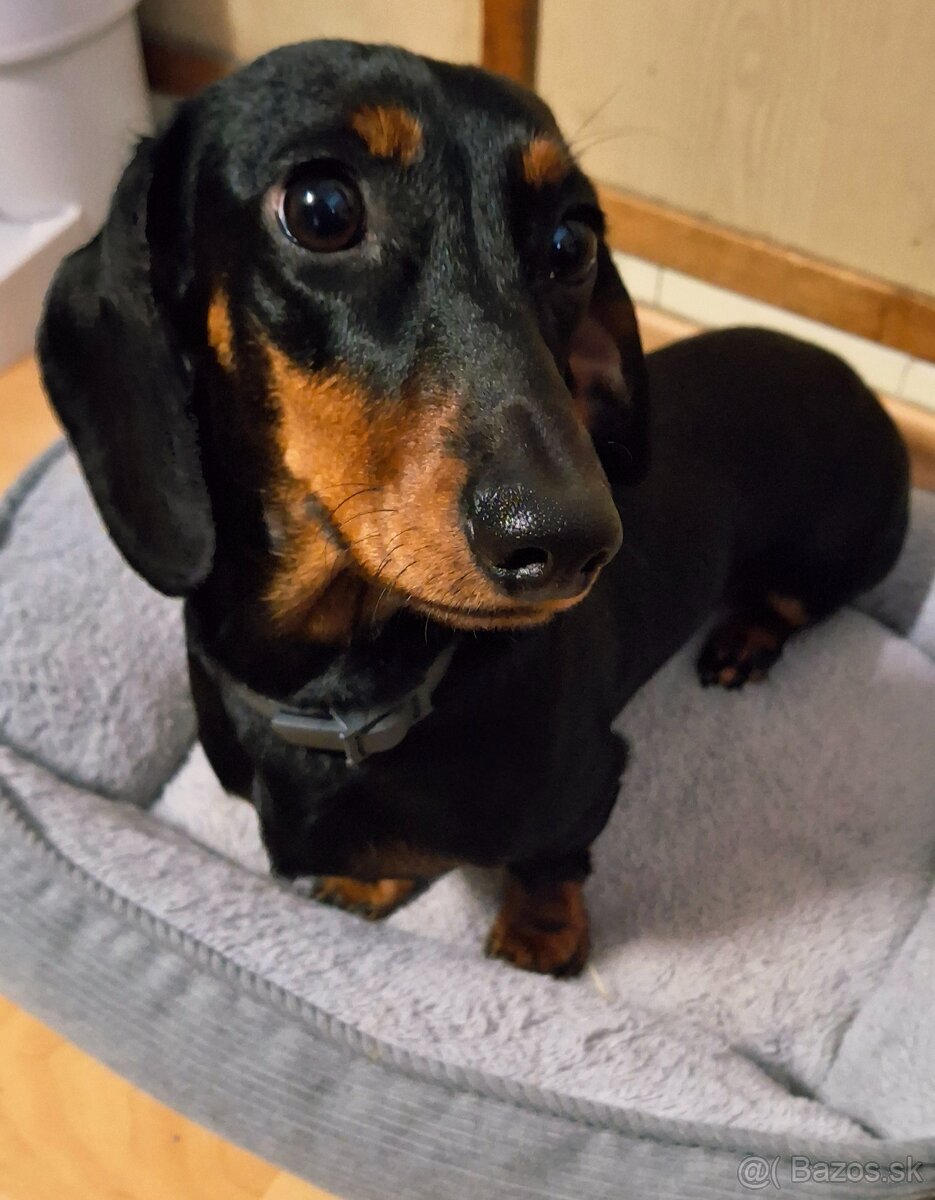 Nelka je 7 mesačná fenka čisteho jazvecika bez PP. Je to velmi aktivne steniatko, preto si hlada domov, kde bude mat pristup do zahrady a môže sa vybehat. Hladame jej rodinu, miluje deti, kde bude mat pristup na kus zahrady. Kludne aj k starsim ludom, ale aby mohla vybehnut pred dom a blaznit sa. Nelka je pri treningoch pozorna a ucenliva, ovlada uz zakladne povely ako lahni, sadni, k nohe, miesto a najviac ju bavi brloharčenie 😊 a je to loptičkovy maniak. Miluje kupel, teplu vodu, bola by vo vani aj hodinu. Vnutri je cistotna, chodi pekne na podlozky. Je velmi mojkacia a stale chodi za clovekom a krasne dokaze oddychovat ak ste v praci. Nesteka zbytocne, len prirodzene strazi ak je niekto zadverami. Idealne by bolo, keby mala aj partacku.