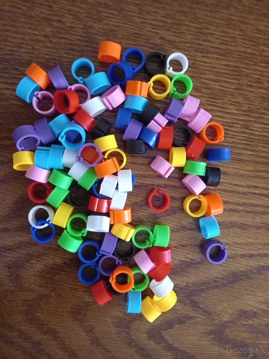 Ponúkam krúžky 10 farieb bez čísel z každej farby po 10ks .Krúžky na označenie holubov. Vnútorný priemer krúžka 0,76cm, vonkajší priemer 8mm .Ďalšie krúžky očíslované od 1- 100ks farba modra, ružová,zelená,oranžová ,žltá,biela. celý balíček 100ks-10eur,dva balíčky 200ks -18eur.Dajú sa použiť viac krát 0949138098