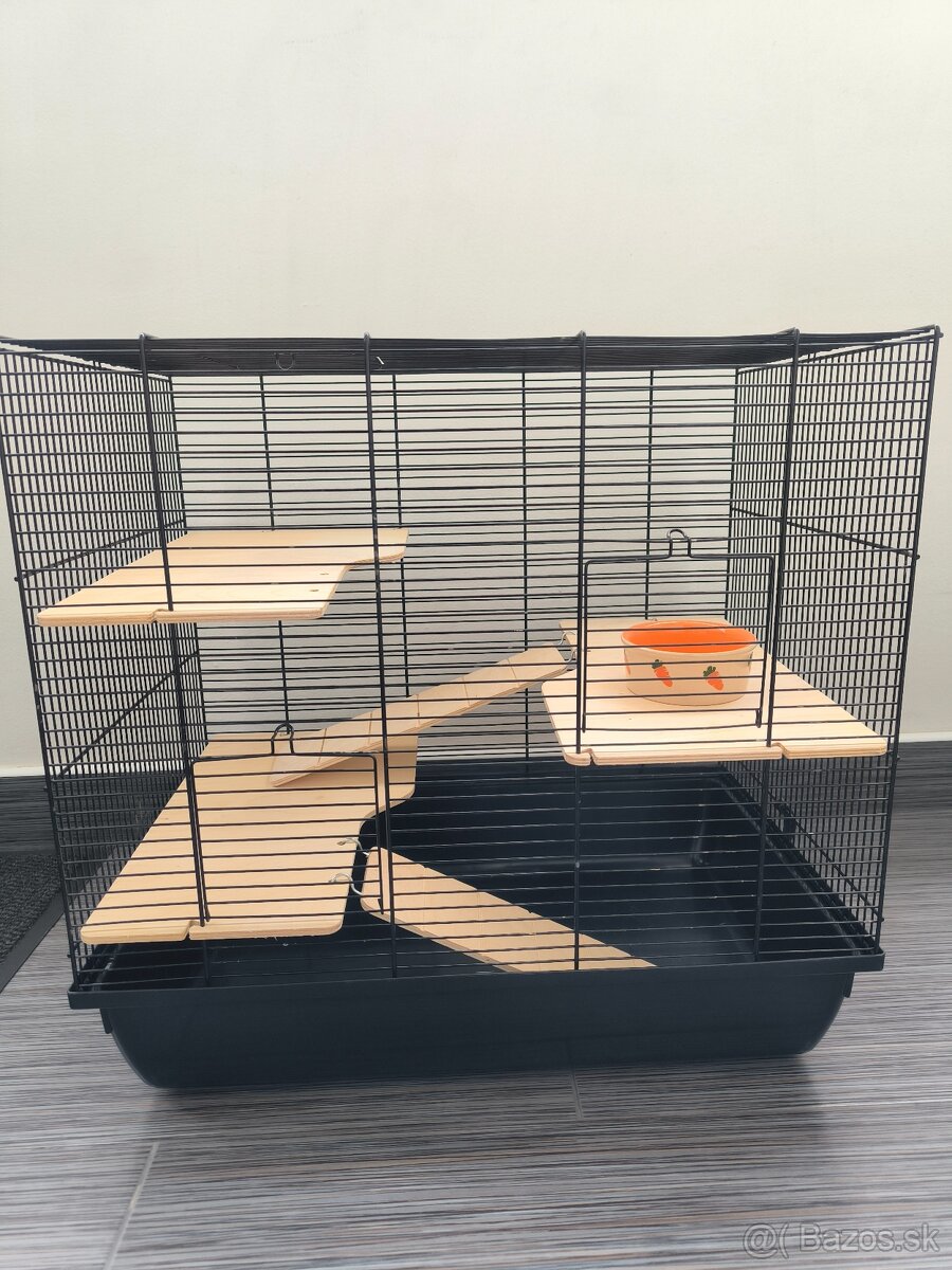 Predám kompletné príslušenstvo na chov hlodavcov (potkany, škrečky..) Ponúkam: Klietka pre hlodavce REX III + Wood 58 x 38 x 55 cm čierna, Ferplast prepravka Aladino medium 30 x 23 x 21 cm, kovový kolotoč 20 cm, drevený domček, závesný drevený rebrík do klietky, 2 napájačky a 2 misky, držiak na ovocie s karabinkou do klietky 20 cm, otvorené krmivo + tyčinka. Klietka má známky používania (najmä odreté miesta po karabinkach z visiacich domčekov), ale je plne funkčná a bola pravidelne dezinfikovaná. Drevené poschodia sa dajú posúvať alebo dať úplne preč. Kovový kolotoč sa dá položiť aj zavesiť. Pre viac info kľudne napíšte. Keďže sa jedná o veľký tovar, ponúkam len osobný odber v Martine, ďakujem za pochopenie.