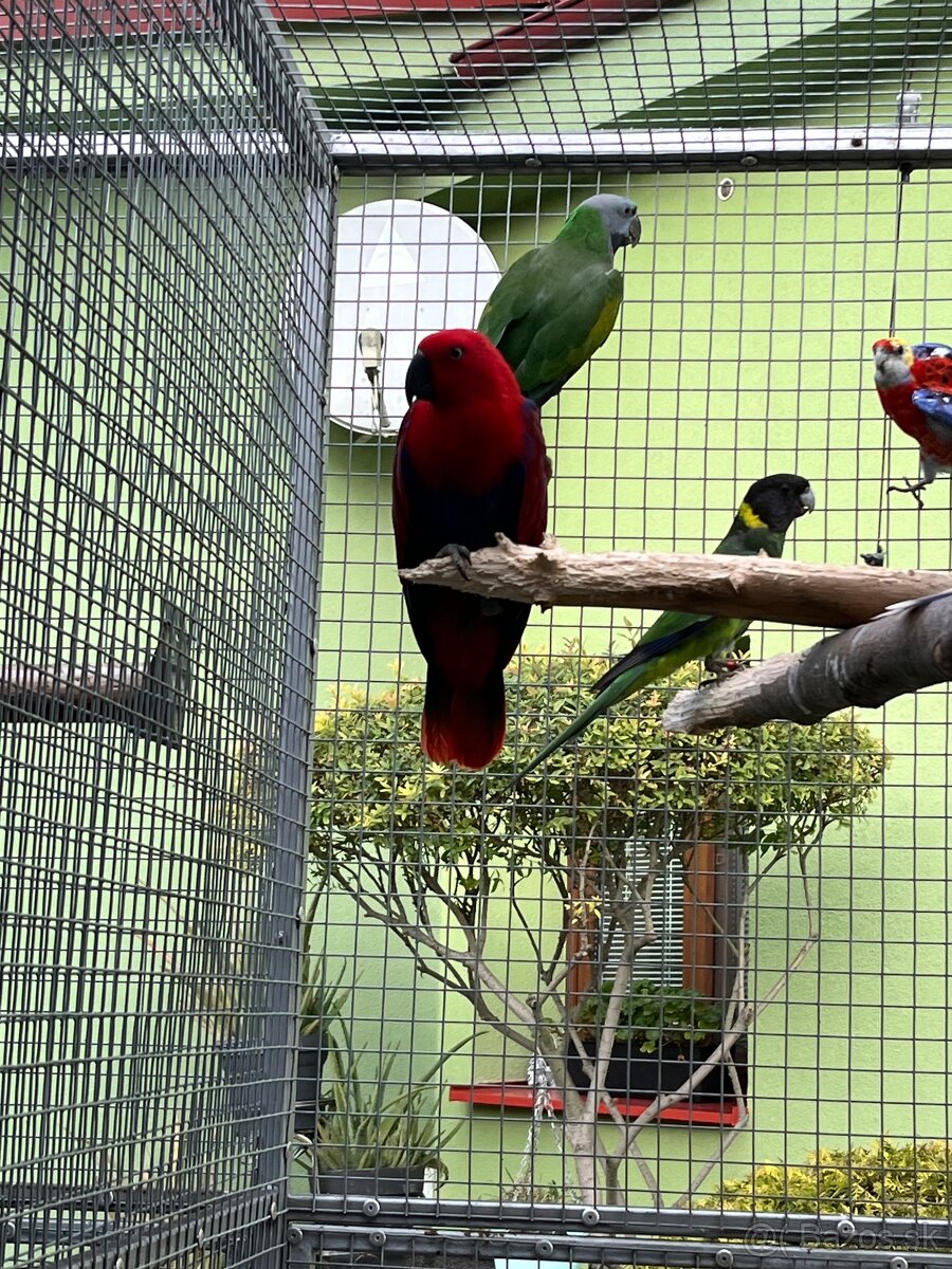 Predám ročnú samicu eclectus polychloros, povinné doklady cites B. Samica je plne samostatná odchovaná pod rodičmi až na bidlo. Ako mláďa mala zlomenú ľavú nohu, v lietaní ani šplhaní jej to neprekáža. Časom sa vie ochočiť, vhodná aj do bytu. Cena 250€.