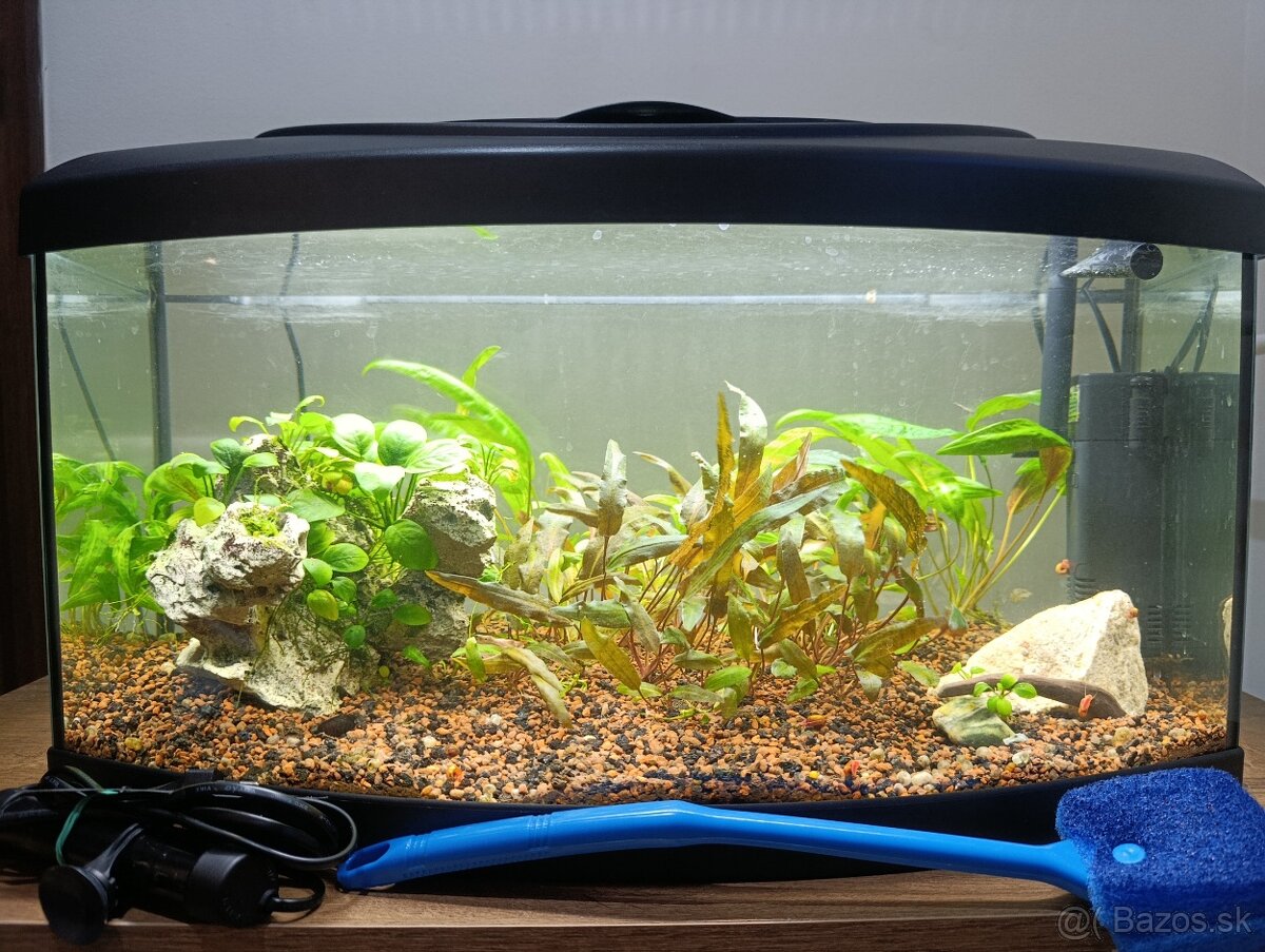 Predám zabehnuté akvárium Diversa 60 s oblými čelným sklom. Akvárium obsahuje z rastlín dva druhy Cryptocoryn a dva druhy Anubiasov na kameni. V akváriu sa nachádzajú Neritiny a pár kusov Kotuliek a Levatiek. Akvárium predám ideálne ako komplet s filtrom a ohrievačom. Osobný odber PO.