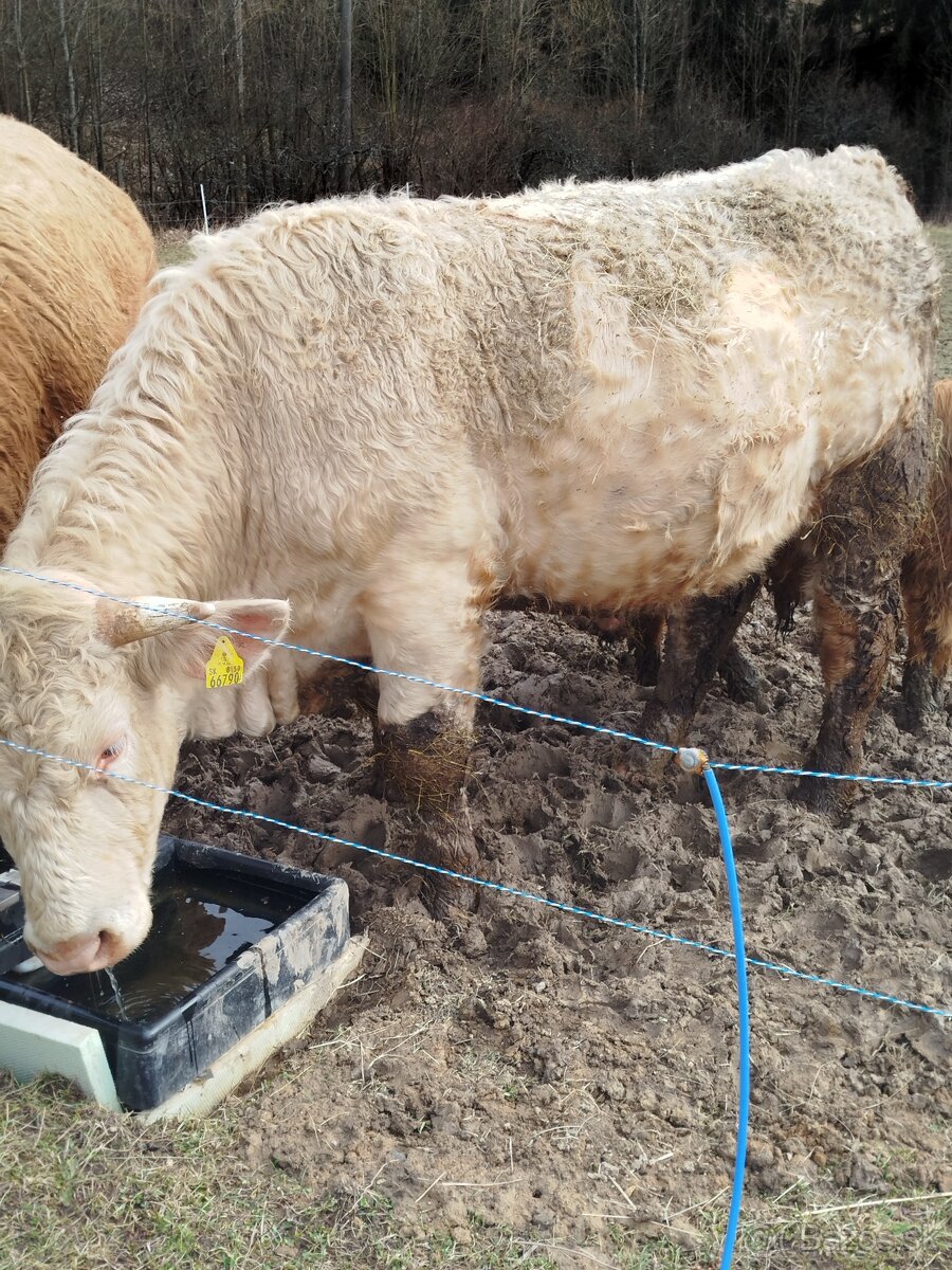 Predám jatocneho býka, vek 25 mesiacov, plemeno Charloais a SS, chovany v oplotku na horských lukach, krmeny iba senom a na paši, váha 600kg a viac, registrovaný.