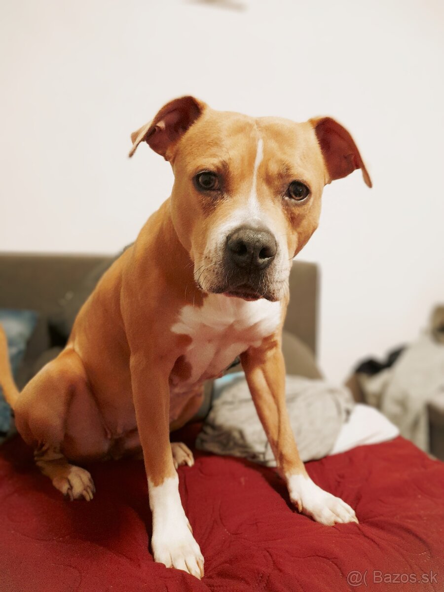 Darujem 5 ročnú fenku stafforda do dobrých rúk. Hygienické návyky má. Nie je agresívna. Je hravá a rozmaznaná a veľmi učenlivá.