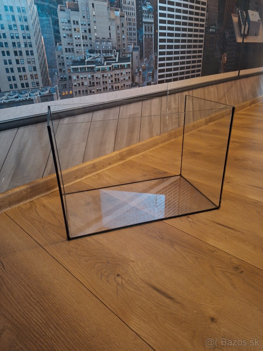 Akvárium je plne funkčné, otestované a udrží vodu. Má estetické vady – na niektorých miestach sú odštiepené kúsky skla z hrán a rožkov (všetko je detailne nafotené). Tieto oťuky nemajú vplyv na tesnosť, ale sú zohľadnené v cene.