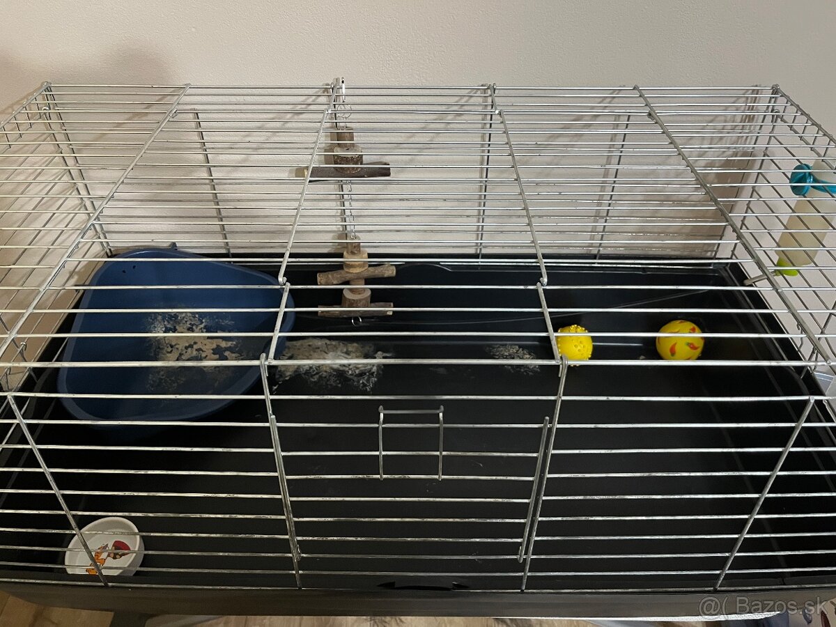Predám klietku pre morča / zajačika používanú 4 roky v zachovalom stave. Rozmery klietky 98 x 53 x 42 cm. Predávam spolu so všetkým príslušenstvom (záchod, napájačka, senník, hračky a prenášačka).