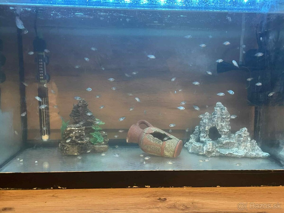 Dobrý deň...mam na predaj... male Africké cichlidy m.maju cca 1cm. 1ks. za 1€ pri viac odberov ...dohoda možná.. na fotkách su aj rodičia.