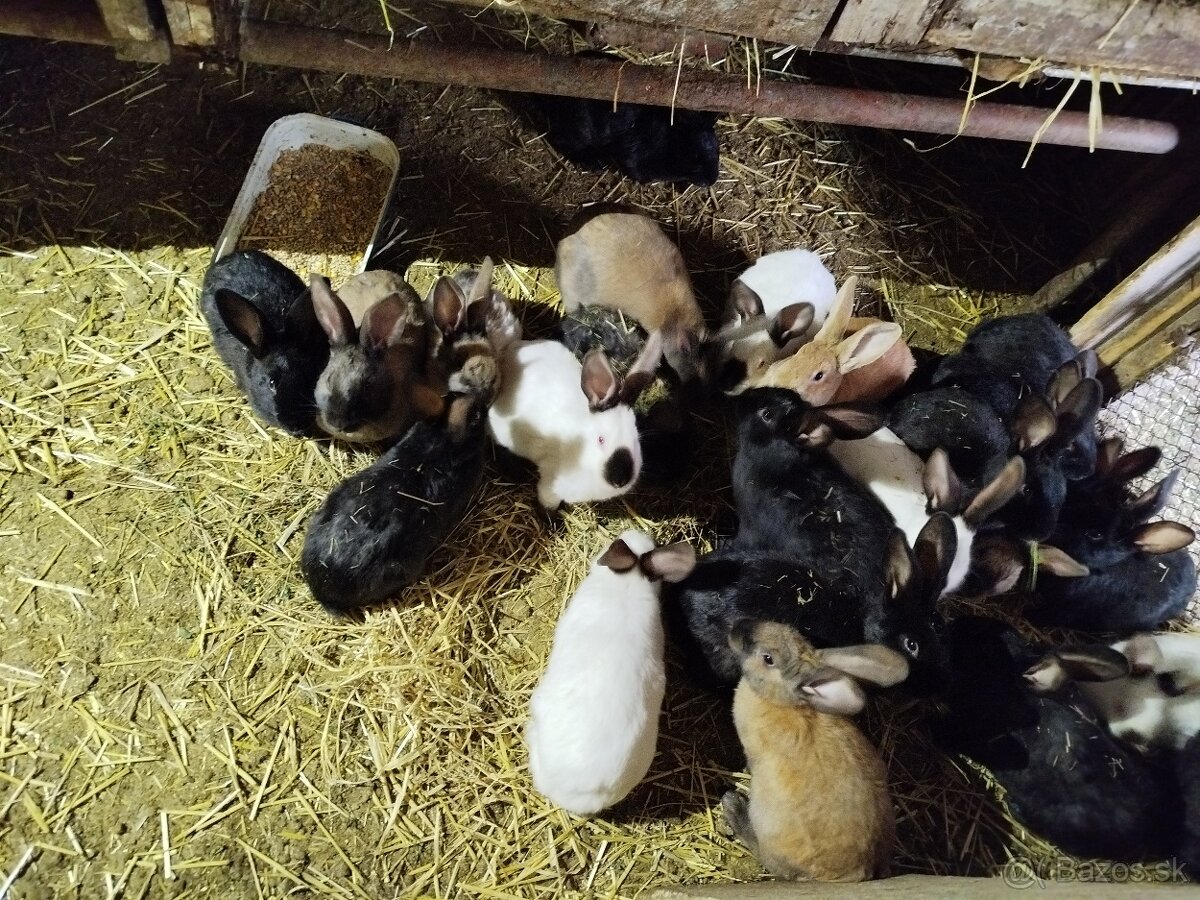 Predám mladé 5,5 mesačné králiky čiernej,bielej a pieskovej farby(matka Burgundská). Možno už páriť.Samce aj samice.