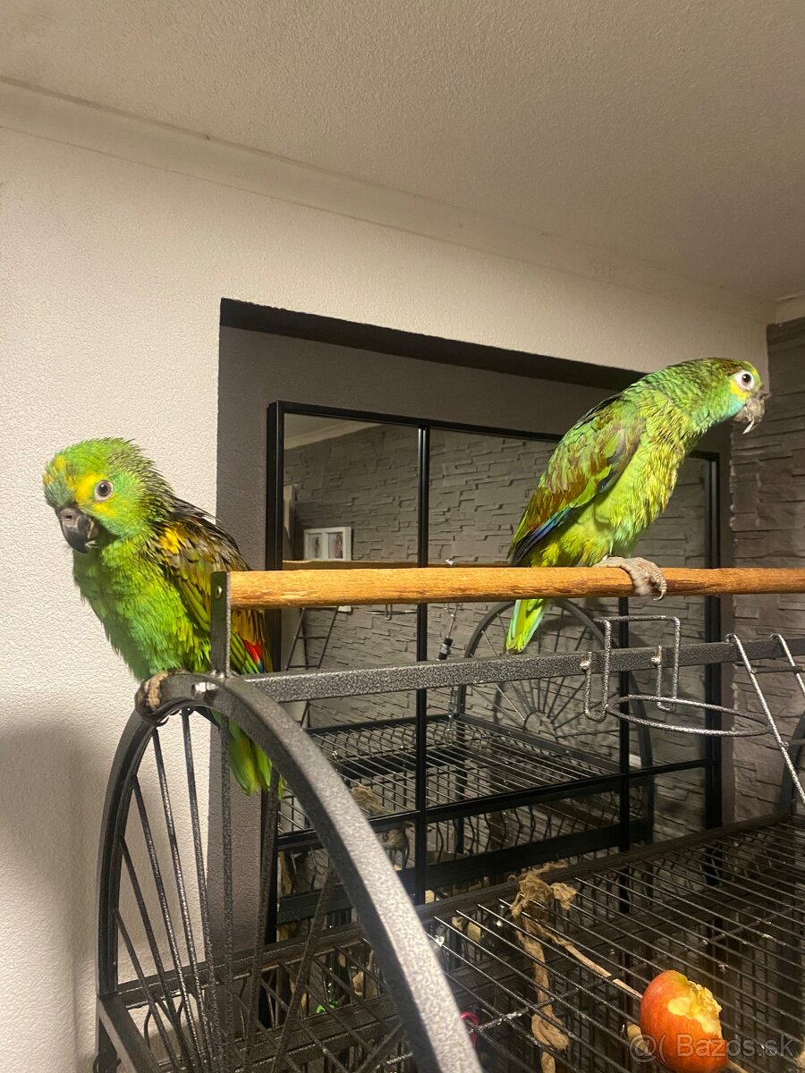 S ťažkým srdcom predám harmonizujúci nepríbuzný mladý pár amazoňanov modročelých. Rok 2025 ( samica o pár mesiacov staršia od samca).