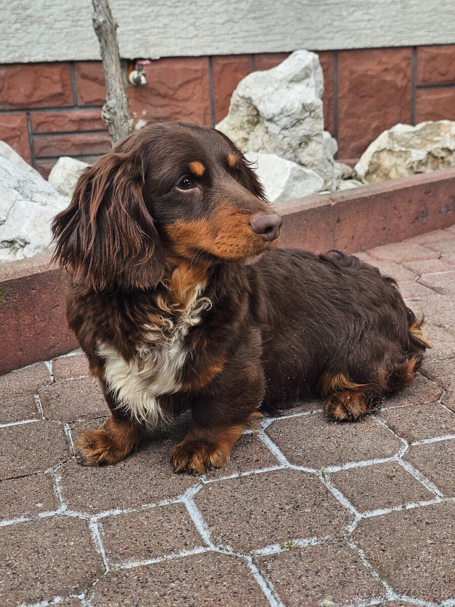 Jazvečík choco tan dlhovlasý psik
