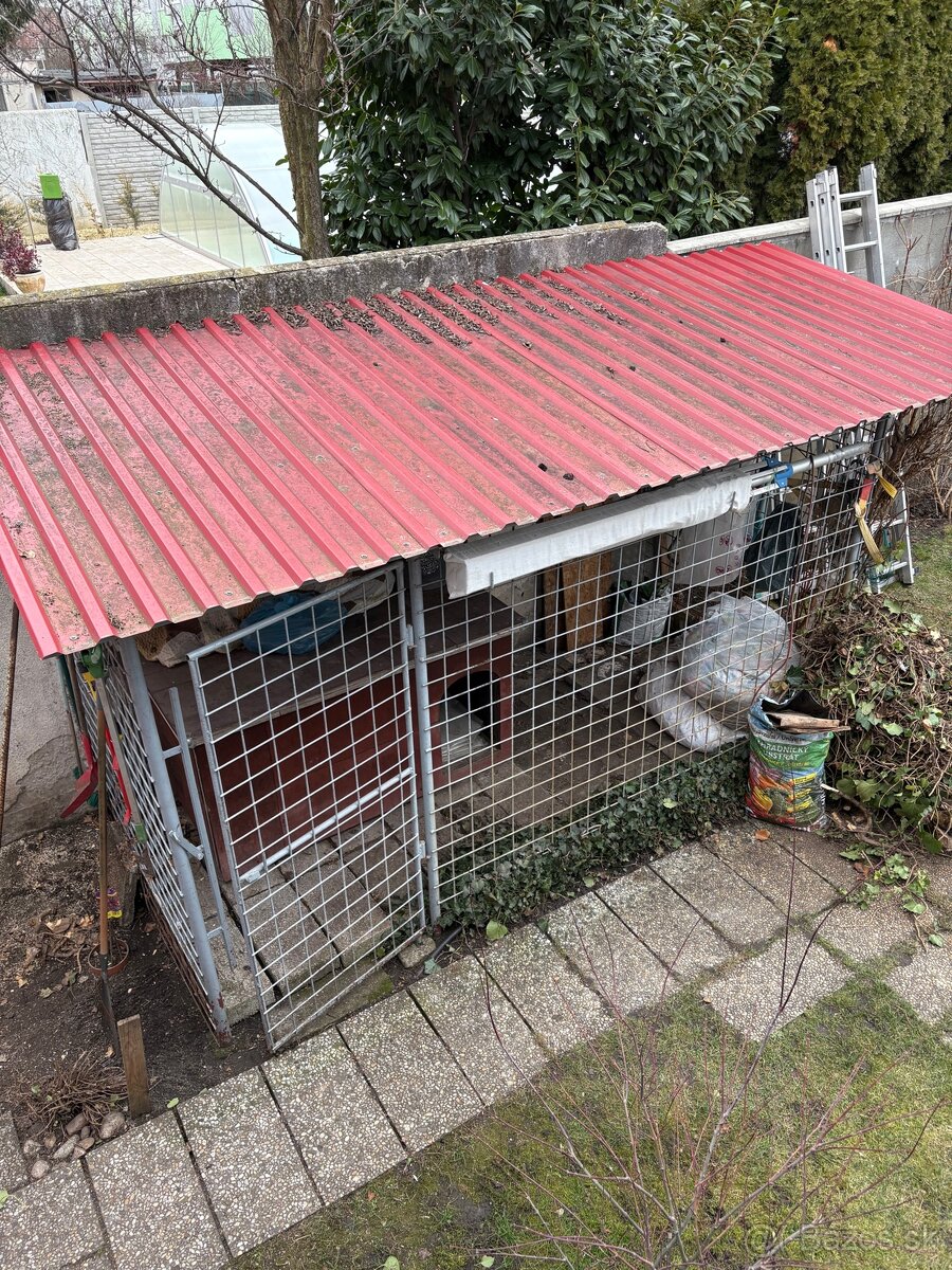 Klietka cca 4 x 2 m. Musíte si ju rozobrať, rozpíliť a odviezť. Búda cca 2 m x 1 m z preglejky a vnútornej vrstvy polystirénu. Strecha odnímateľná. Ponúknite symbolickú cenu.