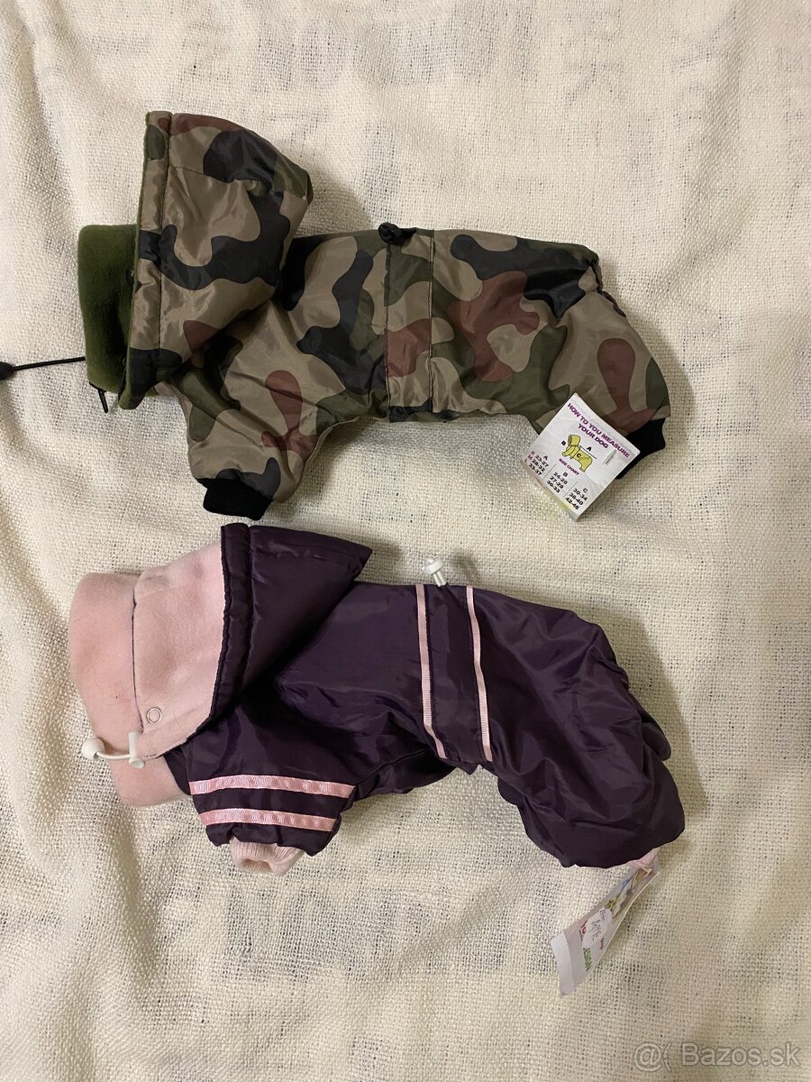 Zimný overal pre psa - oblečený na všetky 4 labky. Fialová a maskacova dlzka chrbta 23-27cm, Oranžová dlzka chrbta 33-37 cm