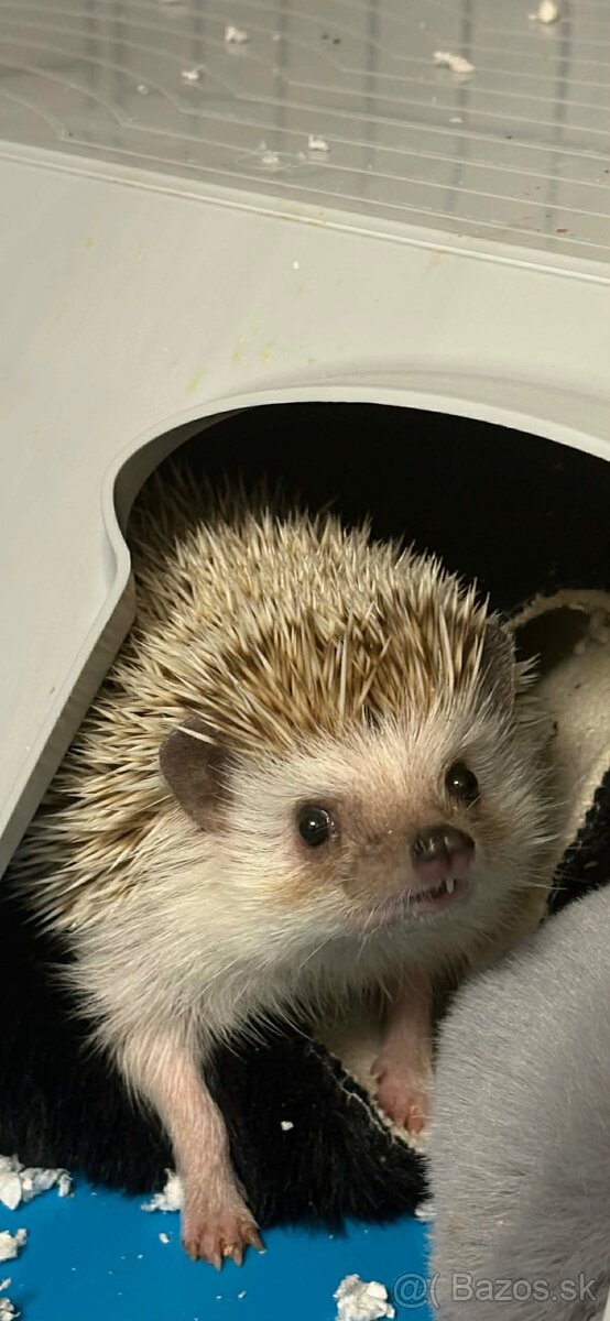 Predám ježka bielobrucheho s komplet výbavou je to samček menom ňufko a ma 8 mesiacov dávam knemu viac než pól vreca Asanu rôzne granulky a maškrty lopatku na zbieranie nečistôt veľkú klietku s vybehom zvykne chodit aj na to vyvisene poschodie v domčeku ma také 2 malé zateplené koberceky s ktorými sa sam zakrýva kefku na umývanie ježka na kúpeľ je už zvyknutý a taktiež aj na ruky v klietke ma ešte koliesko v ktorom behá veľmi rad rôzne hračky a misku na jedlo a vodu dám knemu aj takú zateplenu papučku v ktorej zvykne tiež spinkať mimo klietky budem rad ak si nájde nového majiteľa dôvod predaja rodinne dôvody