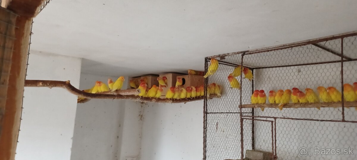 predám agapornisov ruzovohrdlych lutino opalin ročník 25,kruzkovane,preliecene s76 cena za kus 20euro.
