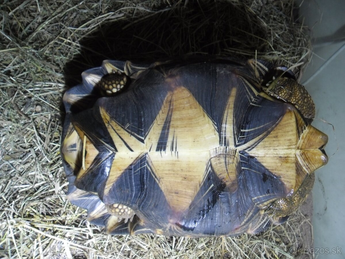 do ponuky dávam tieto dve nezimujúce, vzácnejšie korytnačky pôvodom z Madagaskaru. Dôvodom predaja je ,že sú to obidvaja samci. Mám ich od malého mala cca 5 cm. Vek je 9 rokov. Teraz majú cca 25 cm a váhu 3 kg. Chov podobný ako u kor. leopardích, môžem dokonca tvrdiť že sú aj odolnejšie.U mňa celé leto vo výbehu, len výbehová strava , v zime seno,opuncie . Cena je 1800eur/ks prípadne dohoda. Valentín okr. Pezinok 0903/468175 alebo info@jarovalentin.sk