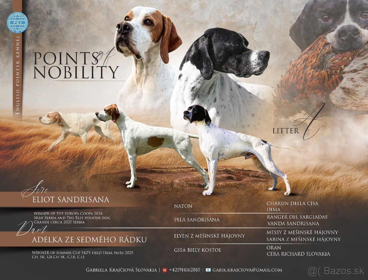 Chs Points of Nobility prijíma rezervácie na šteniatka anglického pointera, ktoré sa narodia začiatkom marca.