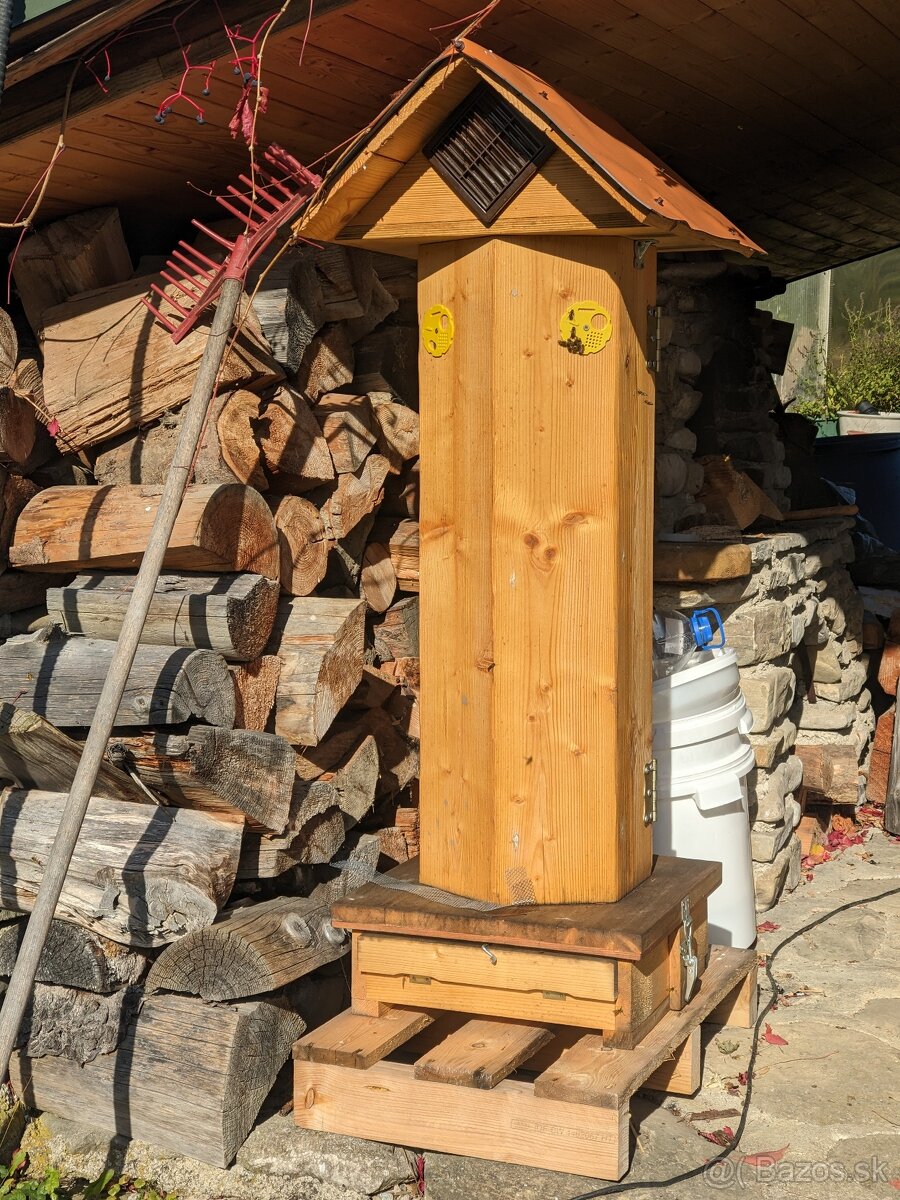 Predám presklený včelí úľ. Môže sa v ňom včeláriť bez zásahu včelára, včelstvo môže žiť v podmienkach podobných ich fungovaniu v prírode, v dutine stromu. Zadné dvierka ponúkajú možnosť náhľadu do úľa.