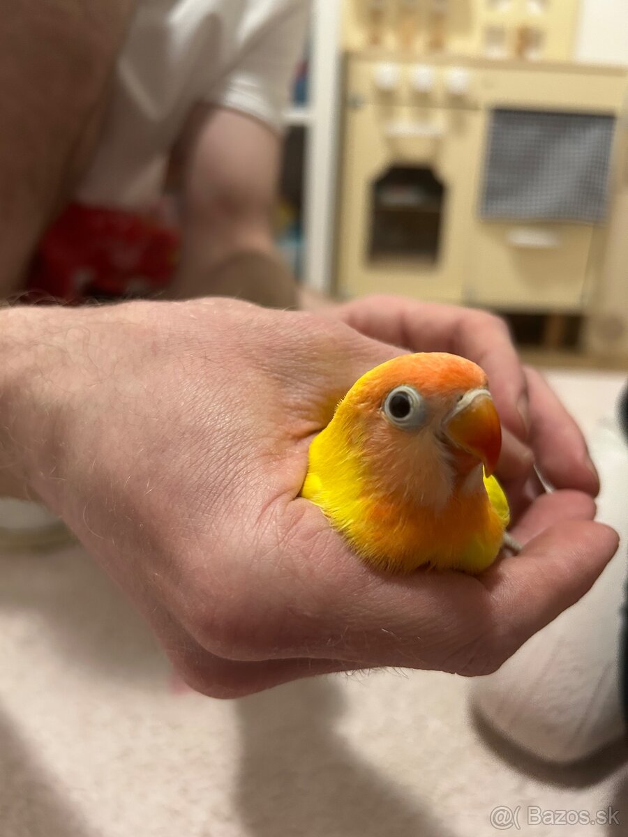 Predám mladého Agapornisa Hnedohlavého mutácia Dec. Zelený. Krúžok 26. Čakám na DNA test. Už vyletel z búdky. Cena dohodou