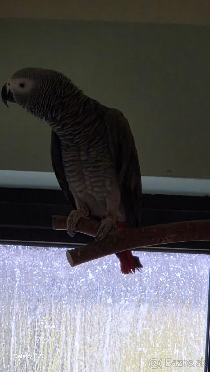 Predám, 5 ročného papagája Žaka. Pohlavie samec, cites a certifikát DNA.